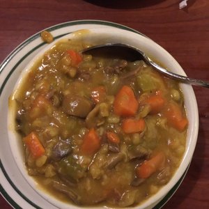 Chopped vegetables hearty mushrooms and tender barley make up this satisfying and simple soup. Brents Delicatessen Restaurant is a family-owned deli in Southern California dedicated to serving guests quality meals--from traditional recipes to premium cuts. Chefs Special Soup of the Day.